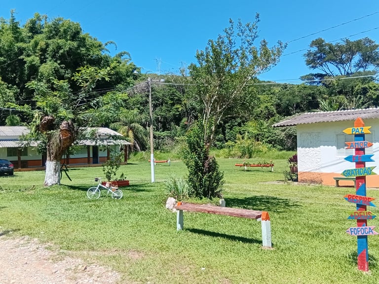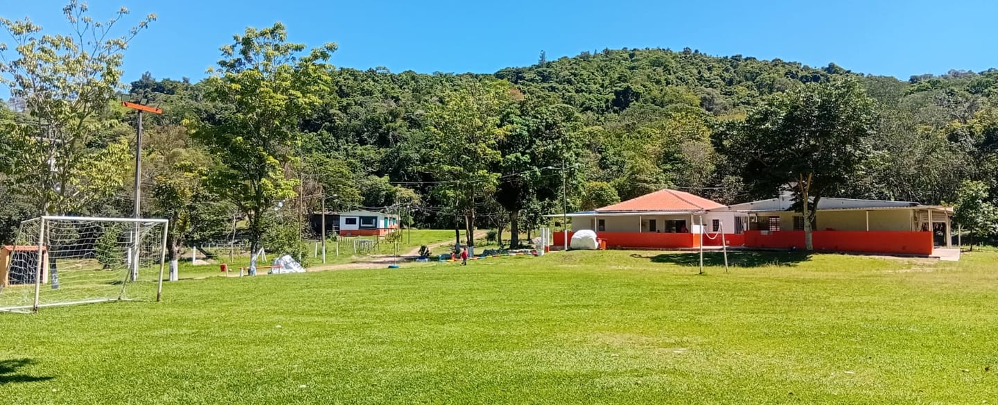 A área externa é composta por um campo de futebol e um parquinho, que estimulam o lazer, a socialização e o desenvolvimento físico por meio de atividades recreativas e esportivas.